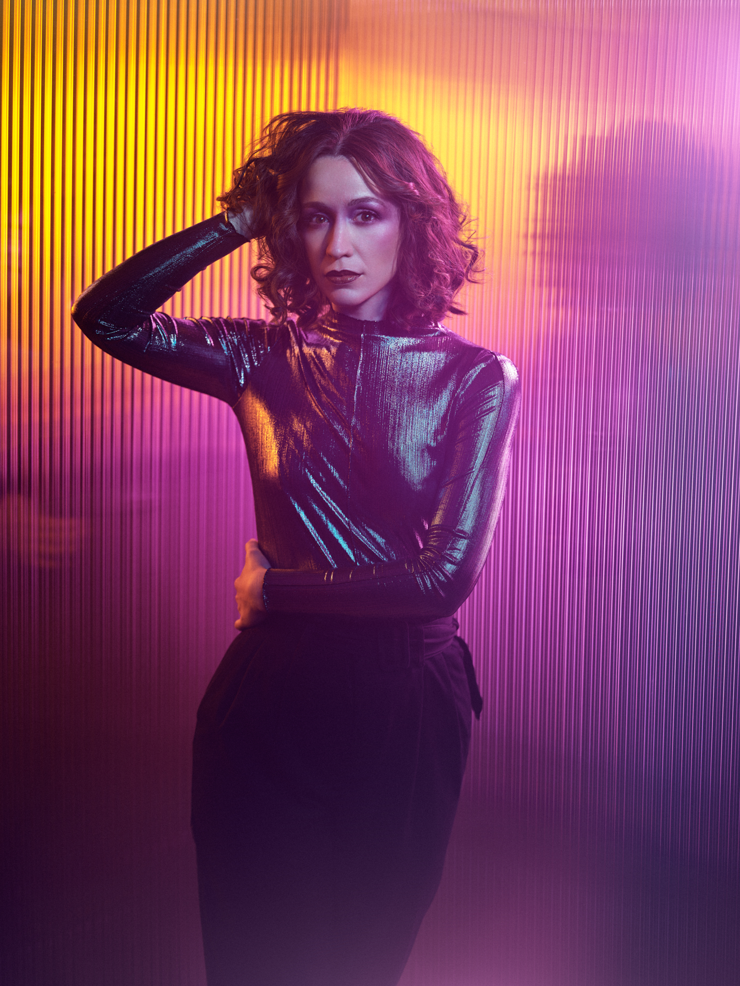 Recently appearing the ‘Death at Pemberley’ tour, she has a very classic ‘period’ look & vibe, so we leant into a futuristic setup.