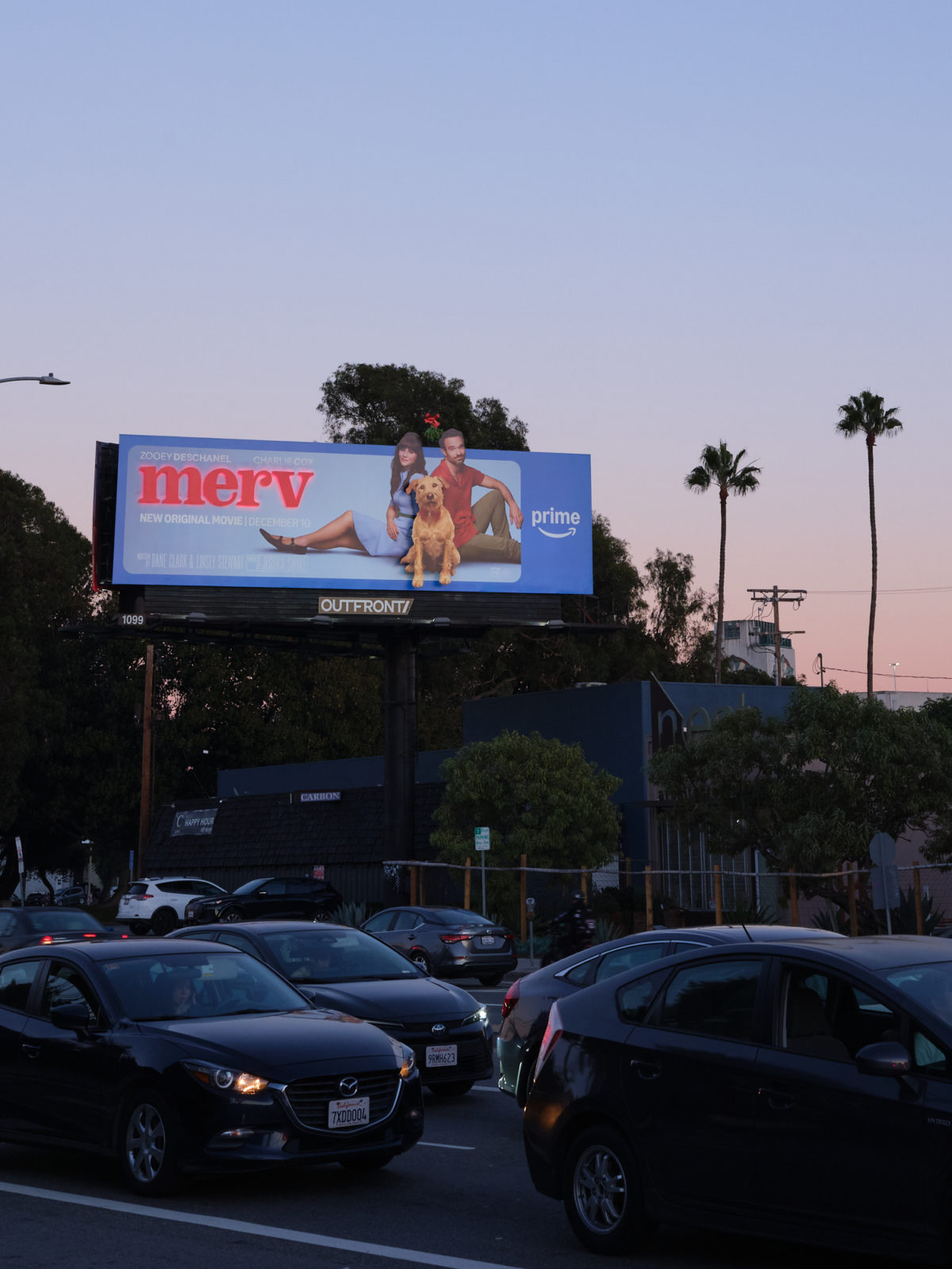 The artwork I shot for new Prime Video romcom MERV, starring Zooey Deschanel, Charlie Cox & leading cinehound Gus the Dog catches eyes on the streets of LA & helps earn big streaming numbers worldwide.